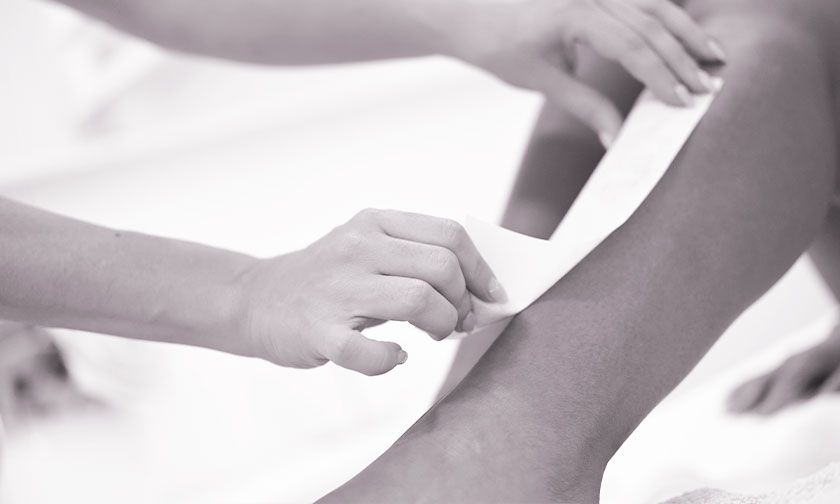 Immédiatement après, elle retire la cire et arrache les poils d'un geste rapide en y apposant des bandes de papier en non tissé. L'esthéticienne termine son travail en appliquant un produit , qui va permettre de détacher les petites boules de cire et parfaire l'épilation.